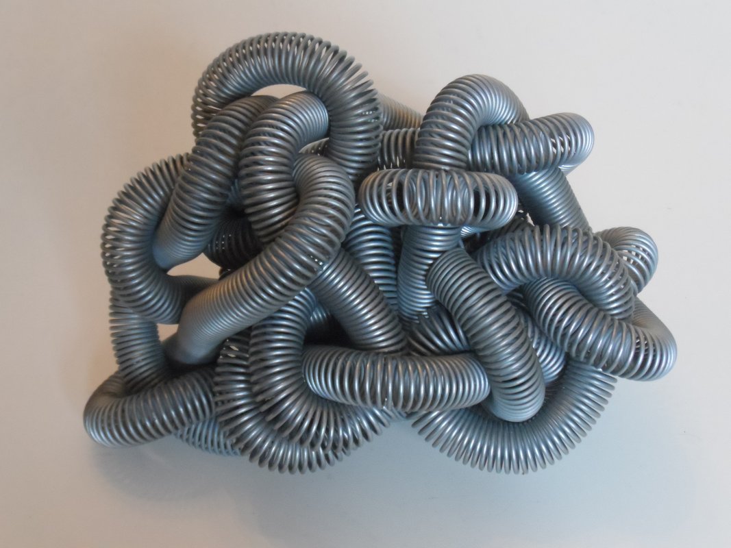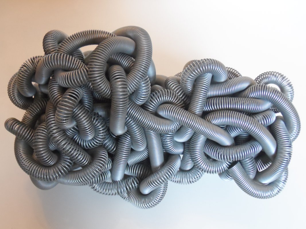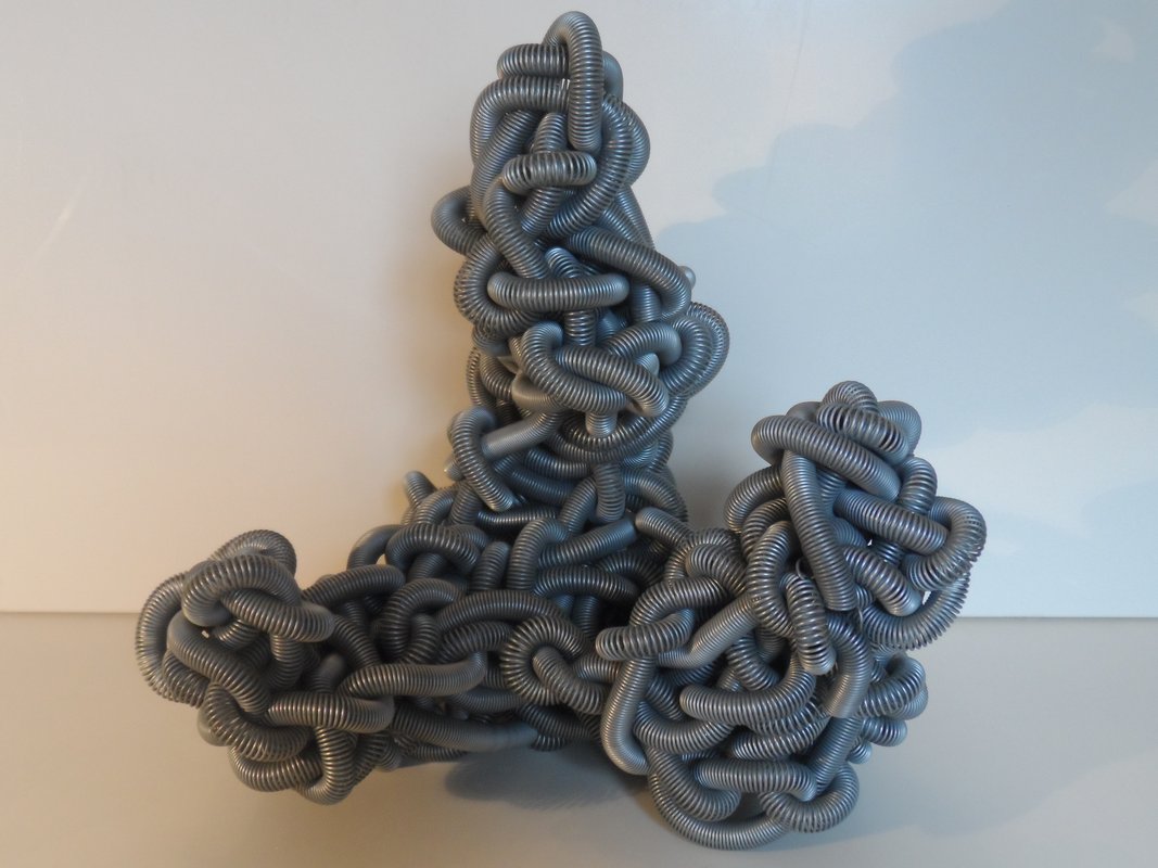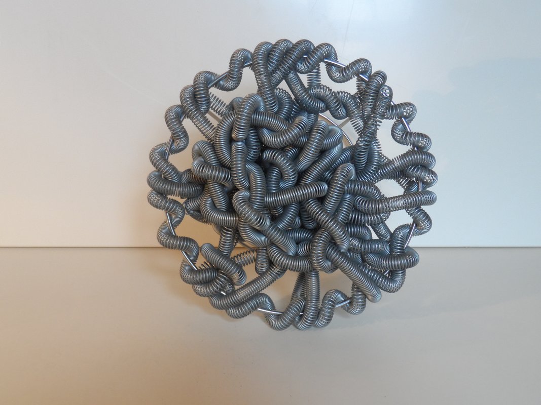 Comprising metallic spiral structures the pieces take form and become alive. They reflect the complex circular motion of which they are a consequence, with neither ending nor beginning.