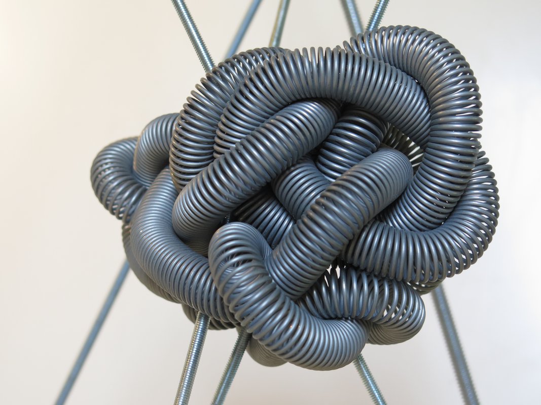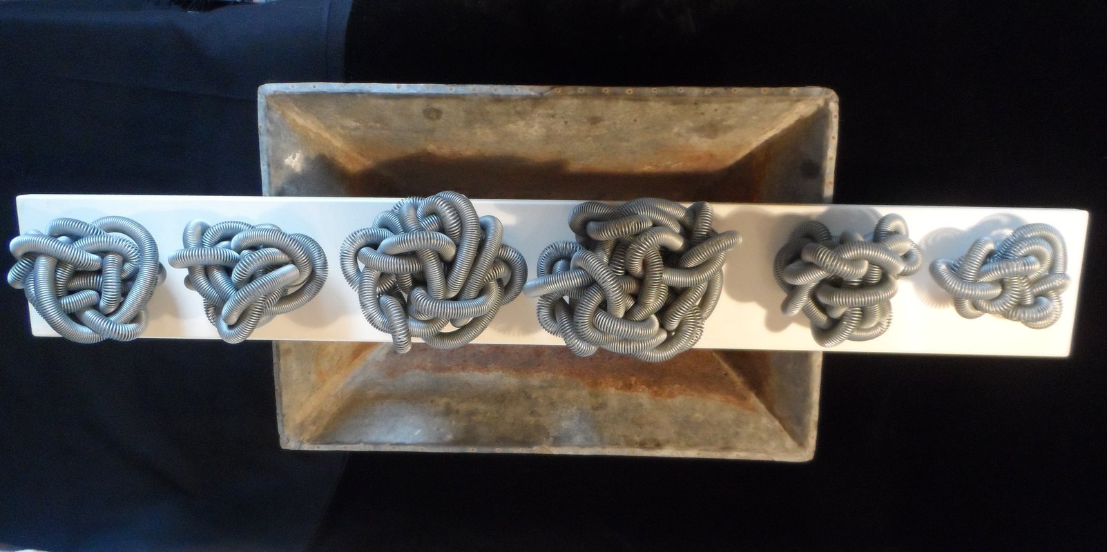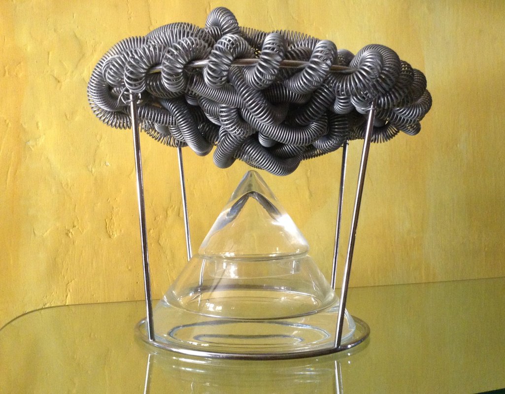 Comprising metallic spiral structures the pieces take form and become alive. They reflect the complex circular motion of which they are a consequence, with neither ending nor beginning.